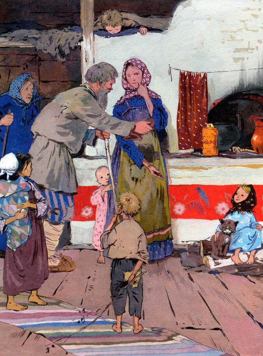 — Знавал я Григорья, да и жену его тоже. Оба весёлые да ловкие были. Если девчоночка по родителям пойдёт, не тоскливо с ней в избе будет. Возьму её. Только пойдёт ли?