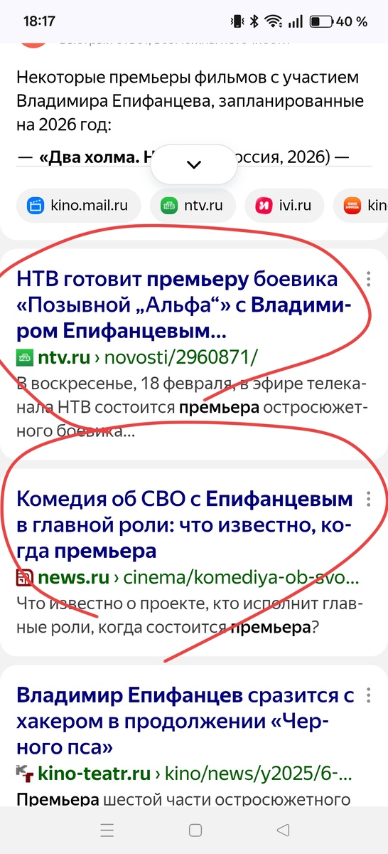 Думаю, только ленивый не слышал новость про участие актера Владимира Епифанцева в кинопроектах, посвященных военной теме в целом и СВО в частности. И думаю, что только ленивый не прочитал, так сказать, бэкграунд высказываний этого актера про нашу страну, про СВО, про патриотизм и про русских людей. Прикрепляю ниже скрин самого поверхностного поиска с цитатами Епифанцева.