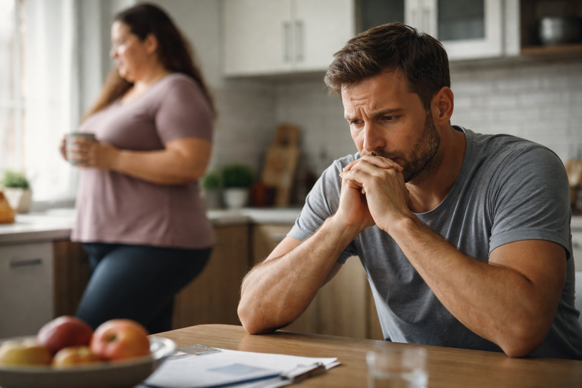Недавно я настоял на анализах, гормонах, диетологе. Не из злобы, а потому что надеялся: вдруг дело в здоровье. Диагноз простой и сухой: ожирение второй степени. Расписали питание, режим. Месяц она старалась, потом все сошло на нет. И врачу она сказала то же самое, что и мне: худеть она не хочет.
