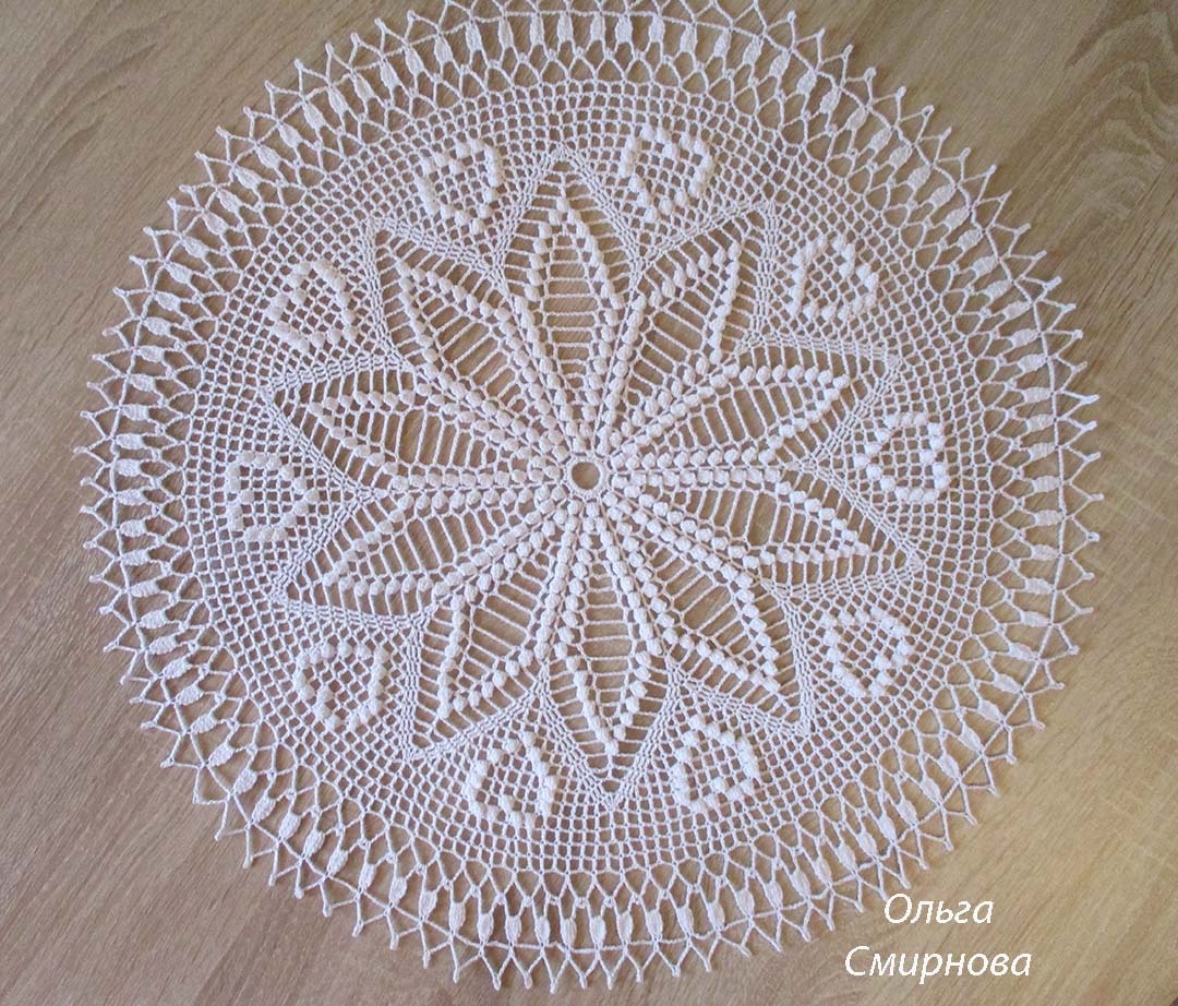 Диаметр 48 см. Нитки "роза" (50г/330м, 51 грамм), крючок №1. МК: https://rutube.ru/video/0b803973712931a077d0a2979f8a54cf/