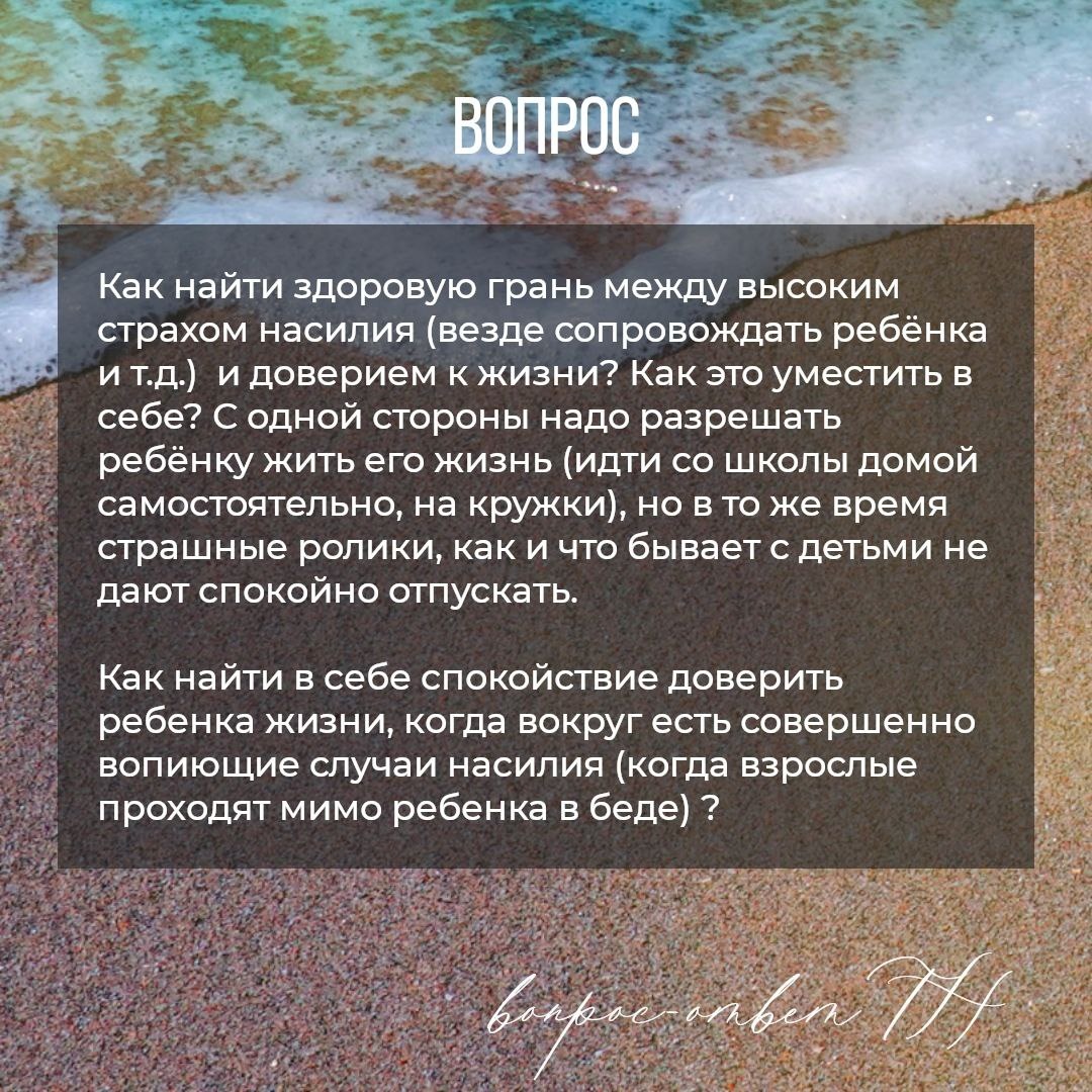 Здесь пост про отличия гиперопеки и заботы Вы не пишете возраст ребёнка, трудно дать точечный ответ. 🔸️Однозначно я бы работала с тревогой и важно помнить, что одна из задач родителей – подготовить ребёнка ко взрослой жизни и самостоятельности. Это очень важно и это тоже забота! 🔸️Конечно, предпринимать меры безопасности в зависимости от места, где вы живёте и от возраста ребёнка. 🔸️Слушать свое сердце, смотреть на ребёнка. Один в 14 лет уже откроет бизнес, а другой еще дитя дитем. Очень много контекста и индивидуальных особенностей в каждом случае. Зависит и от места жительства, от района. Огромное количество факторов. P.S. Моей дочке 10 лет, она сама только выносит мусор и ходит в 5ку. Гуляет и в школу только с нами. Однако! Летом в деревне бегает часами с ребятами! Другой контекст: там другие условия безопасности. #вопросответТН