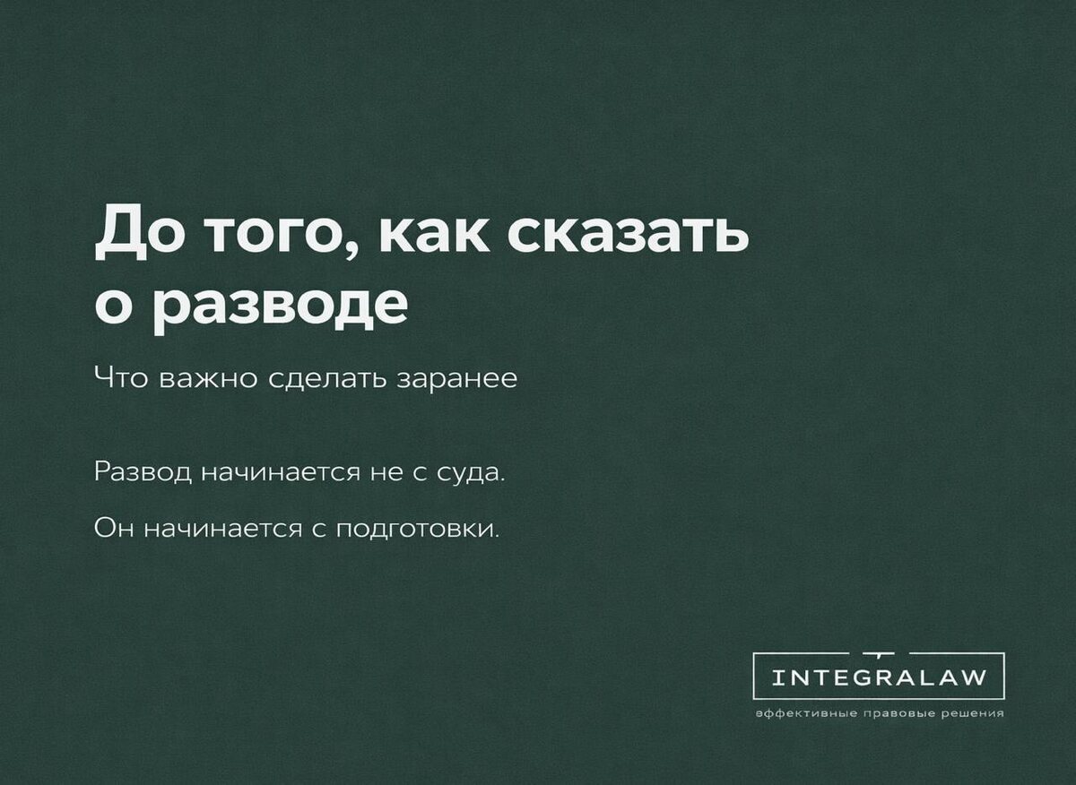 Очень часто конфликт между супругами начинается не в суде и даже не тогда, когда подаются документы. Он начинается в момент, когда вы на эмоциях говорите: «Я хочу развестись». С этого момента многое меняется. Закрываются доступы к счетам. Исчезают документы. Начинаются разговоры «это моё» и «ты ни на что не имеешь права». И самая частая ошибка, которую я вижу в своей практике: сначала объявить о разводе, а уже потом думать, как делить имущество и защищать себя. Женщины часто делают это честно и по-человечески. Потому что кажется: «Мы взрослые люди, договоримся». Но после первого разговора договорённость часто заканчивается. Юридическая подготовка нужна до первой беседы, пока у вас есть доступ к информации, документам и возможность выбрать спокойную стратегию, а не действовать в режиме защиты. Иногда одного правильного шага заранее достаточно, чтобы в будущем не бороться за то, что и так должно было быть защищено.