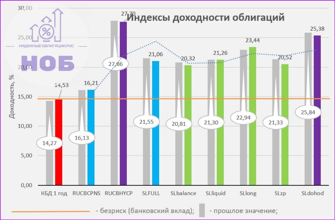 ✅ Максимальная процентная ставка по вкладам, публикуемая Банком России, 14,87% за вторую декаду января, значительное снижение; ✅ Индекс ОФЗ (КБД публикуется на сайте Мосбиржи) с дюрацией 1 год (КБД 1 год на графике👆) - продолжает расти в доходности; ✅ Индекс корпоративных облигаций RUCBCPNS (публикуется на сайте Мосбиржи) - почти без изменений; ✅ Индекс высокодоходных облигаций RUCBHYCP (публикуется на сайте Мосбиржи) - без изменений; 📌 Индекс полной доходности Списка Лучших облигаций 2025 SLFULL снизился почти на полпроцента. В Список вошло 54 облигации вместо 59 ранее, при этом общий порог входа по YTM не менялся. ✅ Индекс SLbalance портфеля СБАЛАНСИРОВАННЫЙ - снижение 0,5%; ✅ Доходность ликвидной части Списка SLliquid - без изменений; ✅ Индекс портфеля ДОЛГОСРОЧНЫЙ SLlong - рост почти 0,5%; ✅ Индекс облигаций с ежемесячным купоном SLzp - снижение более 0,5%; ✅ Портфель ДОХОДНЫЙ (индекс SLdohod) - снижение 0,5%. Как формируются индексы (ссылка активна). Состав портфелей обновлённог