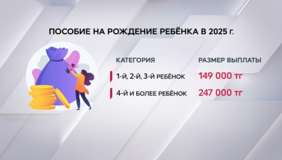 Более 800 млрд тенге направили в Казахстане за прошлый год на выплаты по рождению и уходу за детьми, передает «24KZ». Размер пособия на первого, второго и третьего ребёнка составил 149 тысяч тенге, за четвёртого и последующих детей – 247 тысяч тенге. Также в Казахстане предусмотрены выплаты по уходу за детьми до полутора лет. Для неработающих размер пособия зависит от очередности ребёнка и составляет от 23 до 35 тысяч тенге. Работающие опекуны получают 40% от среднемесячного дохода, в среднем это 86 тысяч тенге. Также из Государственного фонда социального страхования назначается единовременная выплата по случаю потери дохода в связи с беременностью и родами, средний размер которой в 2025 году составил почти 1,5 миллиона тенге. Господдержку в прошлом году получили 567 тысяч человек.