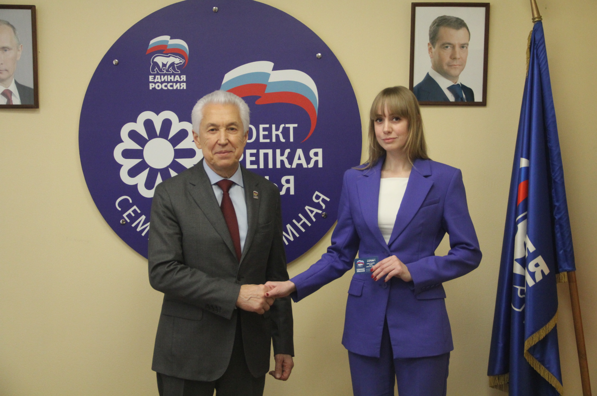 Заместитель секретаря Генсовета партии, руководитель фракции «Единая Россия» в Государственной Думе Владимир Васильев вручил партбилеты двум новым представителям партии. Церемония вручения прошла в торжественной обстановке на базе региональной общественной приёмной. Первой получила свой партийный билет Елена Виноградова – лауреат престижной премии Губернатора Тверской области для ученых за выдающиеся достижения в области науки и техники в номинации «Аспирант года» по направлению гуманитарных и социальных наук. В настоящее время Елена находится в декретном отпуске, а после него продолжит работать в Центральном банке. Ее научный опыт и аналитические способности, несомненно, станут ценным вкладом в работу партии. Вторым новоиспеченным членом «Единой России» стал Алексей Медведев, обладатель благодарности Губернатора Тверской области за 2022 год за добросовестное исполнение служебных обязанностей и значительные успехи в обеспечении безопасности граждан на территории Тверской области. Алекс