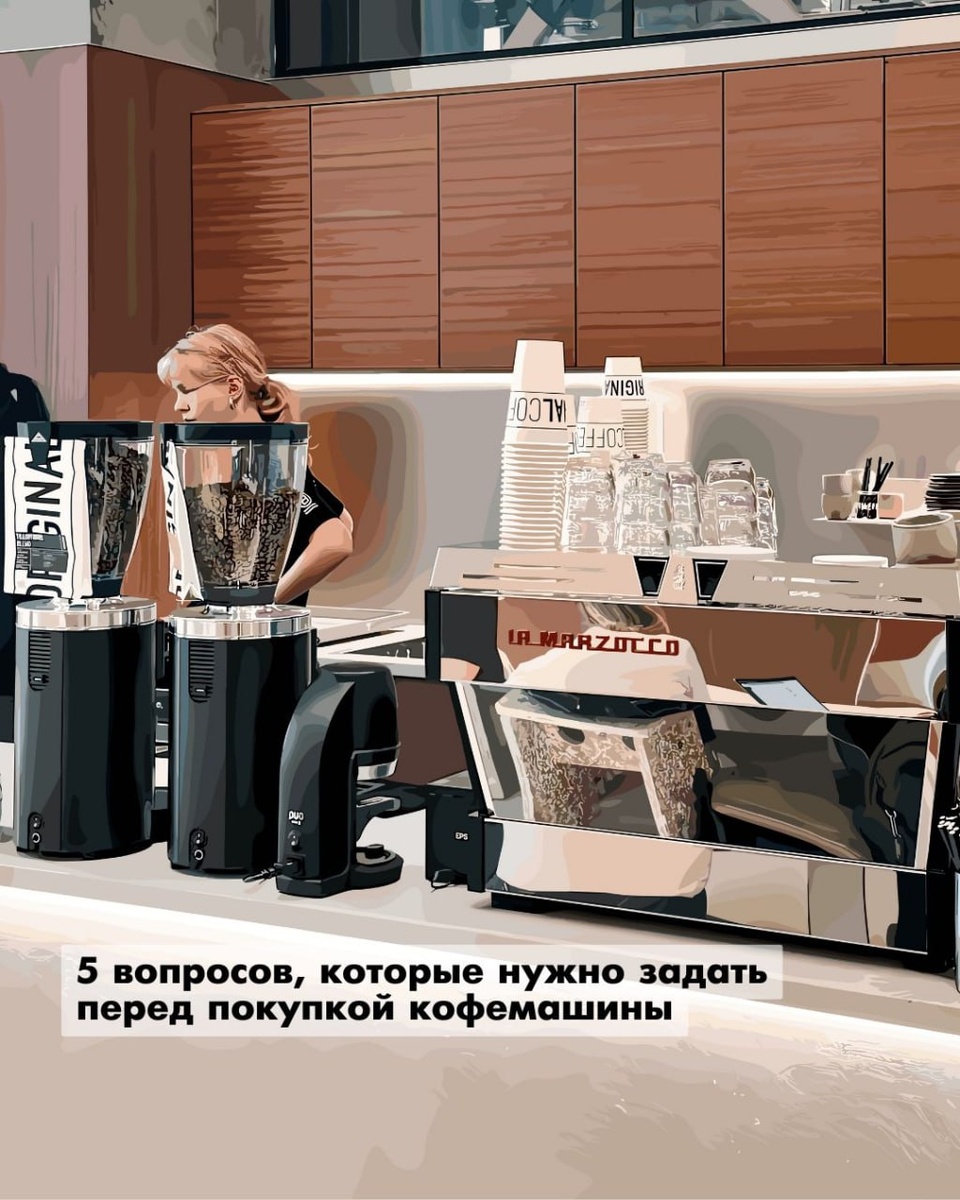 Покупка кофемашины — одно из самых дорогих и ответственных решений в кофейне. Ошибка на этом этапе потом превращается в потери денег, времени и нервов. Перед тем как выбирать бренд и модель, задайте себе эти 5 вопросов. 1️⃣ Какой у меня реальный поток, а не «мечта»? Не «сколько хочу», а: — сколько чеков в час — пики и провалы — сколько часов в день работает машина Машина должна справляться с пиком, а не красиво работать в спокойный момент. 2️⃣ Кто будет на ней работать? — опытные бариста или новички — постоянная команда или текучка — есть ли старший, который контролирует настройки Некоторые машины требуют дисциплины. Другие — прощают ошибки. Это принципиально разные инструменты. 3️⃣ Какая у меня вода и что с ней будет дальше? Важный вопрос, который почти всегда игнорируют. — есть ли анализ воды — будет ли фильтрация — кто и как её обслуживает Без воды кофемашины не существует. Именно она чаще всего убивает оборудование. 4️⃣ Что будет, если она остановится? — есть ли сервис