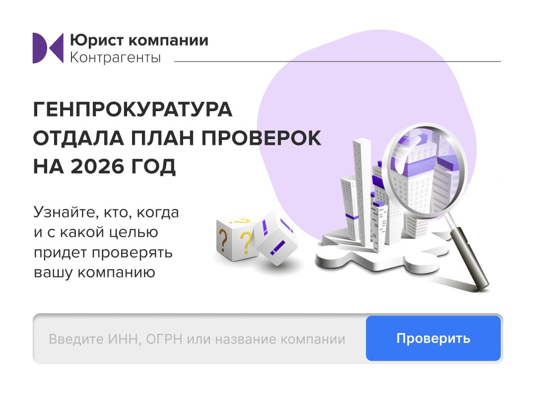 В сервисе Юрист компании Контрагенты план обновлен по каждой компании. В режиме одного окна вы увидите кто, когда, с какой целью придет проверять, и сможете скачать готовые отчеты с ЭЦП, которые помогут при проверке госорганов и даже в споре. ✨ Это не просто информация, а инструмент с юридической силой: ⁃ подготовит к визиту проверяющих заранее; ⁃ подтвердит должную осмотрительность; ⁃ снизит риски штрафов, доначислений и последующих споров; ⁃ поможет спокойно пройти проверку без аврала. ↖️ Оставьте заявку, чтобы узнать, ждать ли проверку вашей компании, получить доступ к сервису и подготовить все документы заранее.
