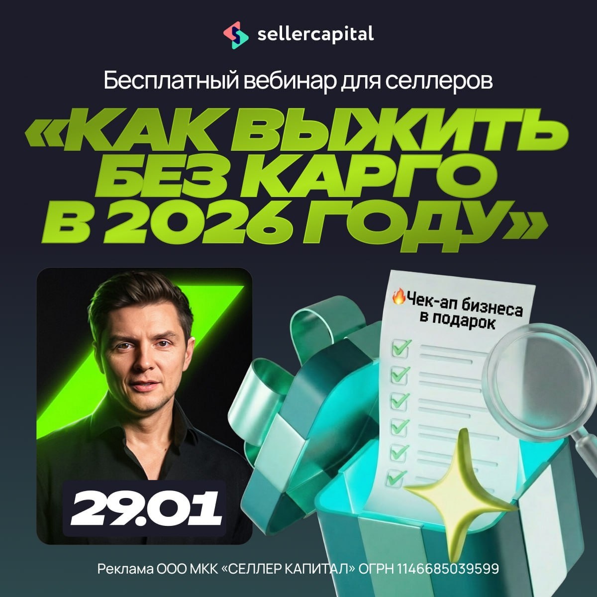 ! 🔥 Наши партнёры из Seller Capital вместе с Дмитрием Ковпаком и топ-селлерами рынка проводят бесплатный большой эфир, чтобы помочь вам подготовиться заранее и не потерять бизнес. Новые правила: серые схемы почти мертвы, риски блокировок, штрафов и конфискаций растут каждый день. А маржа? Её можно не просто сохранить — а вырастить! 29 января в 16:00 МСК — бесплатный мощный эфир «Белая логистика 2026: как выжить и ЗАРАБОТАТЬ, когда карго закончится» С кем: 🚀 Дмитрий Ковпак — Основатель акселератора «АКС» для продавцов на маркетплейсах. Один из самых сильных экспертов по Китаю и масштабированию селлеров в России. 🚀ТОП-селлеры, которые на практике решают вопросы логистики и устойчивости бизнеса прямо сейчас. Что реально получишь: • Чёткие шаги перехода на белую логистику без просадки маржи • Как перестроить закупки, финансы и масштабирование под новые правила • Как избежать блокировок и штрафов + даже увеличить прибыль в 2026 Бонус только для участников (бесплатно!): Персональный ан