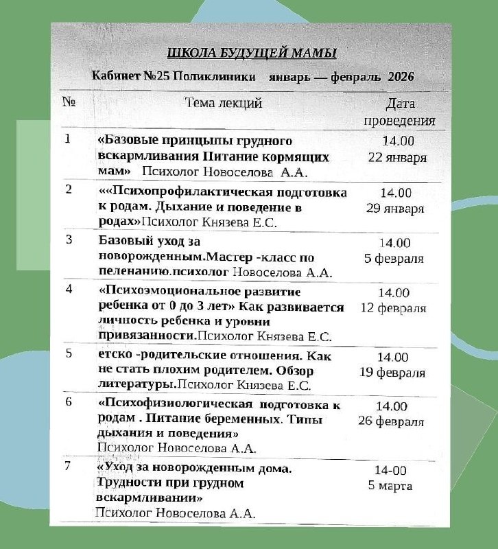 ❄️ Расписание бесплатных курсов подготовки к родам для состоящих на учете в нашем центре будущих мам