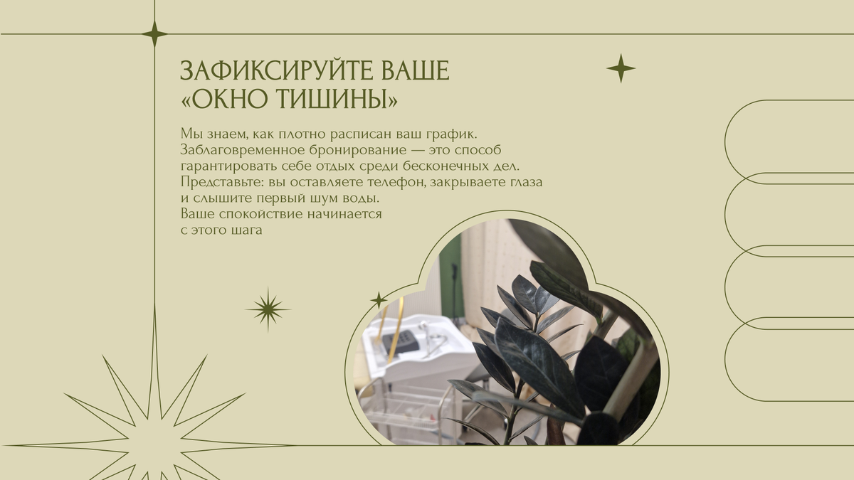 Часто мы ждем выходных или отпуска как спасения, но когда они приходят, сил на восстановление уже нет. Организм не успевает переключиться из режима «решать задачи» в режим «отдыхать». В психологии это состояние иногда сравнивают с резким торможением поезда: механизмы шумят, искрят, но инерция слишком велика. В «Мурашках» мы видим, что самый качественный результат получают те, кто вносит заботу о себе в календарь так же дисциплинированно, как рабочие встречи. Запись на процедуру — это не просто техническое бронирование времени в журнале администратора. С этого момента начинается ваша психологическая разгрузка. Мозг получает сигнал: «Скоро будет безопасно и тихо». Когда вы заранее фиксируете «окно тишины», вы создаете защищенное пространство. В этот час или два никто не сможет занять ваше время внезапной задачей или звонком. Это легальный способ выключить телефон и побыть в тишине. Многие привыкли, что сервис — это когда просто вежливо здороваются. Для нас профессионализм заключается в н