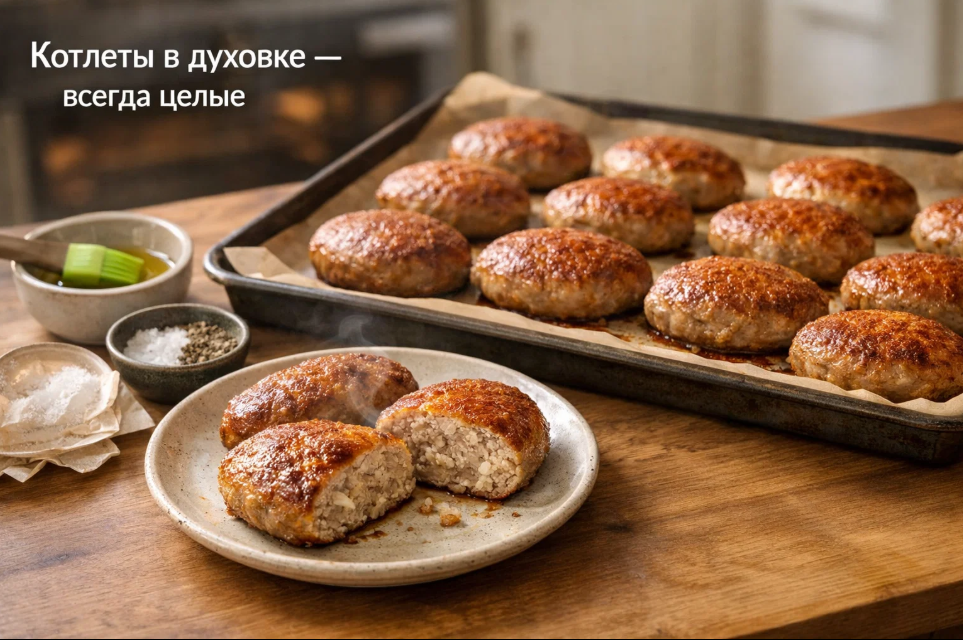 Готовьте с удовольствием. И пусть ваши котлеты всегда получаются целыми, сочными и вкусными — неважно, на сковороде или в духовке.