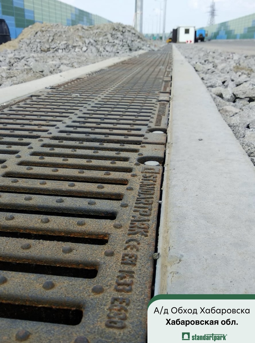 🔺 серия BetoMax DN300 с чугунной решеткой Е600 установлена вдоль дороги.