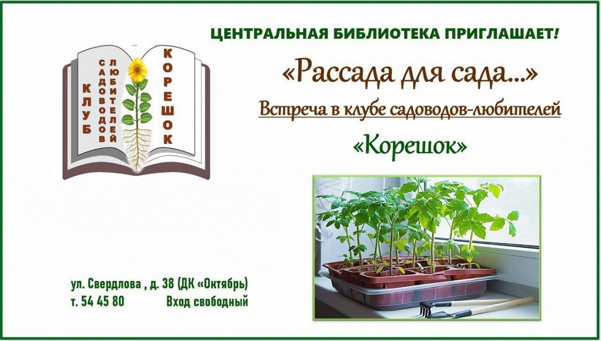 ✨ Встреча в клубе садоводов-любителей "Корешок" 🌱Подготовка к посевной Приглашаем на нашу интересную встречу. Будем делиться опытом ❗ 📆 28.01.2026 🕒 15:00 🏢 Центральная библиотека 📍 г. Подольск, ул. Свердлова, д. 38 💰 Вход свободный❗️ ⭐Поддержать канал голосом 🍰Где поесть в Подольске ✅ Мероприятия Подольск https://dzen.ru/id/66ed500f7b5671493eca3fd6 http://vk.com/podolsk_events http://dzen.ru/podolsk_events