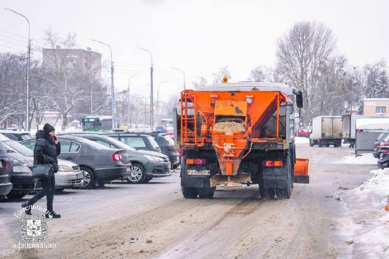На Гомельщине продолжается обработка улиц противогололёдными материалами
