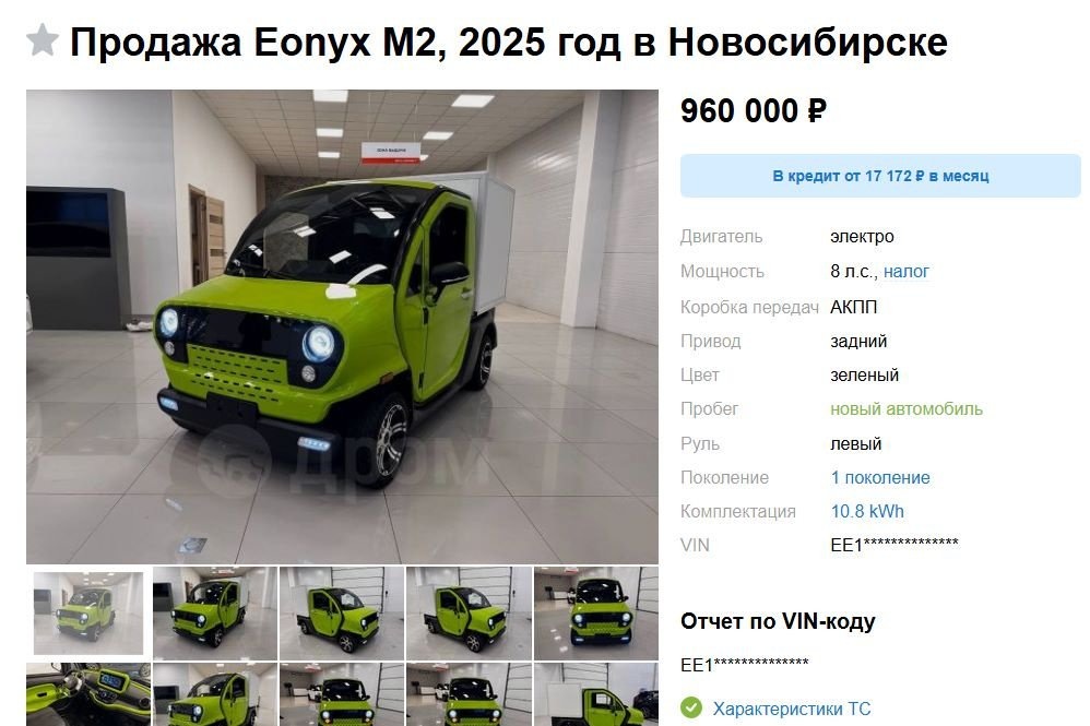 У дилеров начали появляться «живые» автомобили Eonyx Profi стоимостью 960 тысяч рублей. Причем, как отмечает канал «Автопоток», грузовичок сразу оснащен промтоварным кузовом. Eonyx Profi выпускает калининградский завод «Автотор». Это субкомпактные квадрициклы, сертифицированные по категории L7e. Страховка и налоги рассчитываются по мотоциклетным тарифам, но управлять машиной можно с правами категории «В». Длина автомобиля — 2960 мм, ширина — 1460 мм. Размер колесной базы — 1850 мм. Общая полезная нагрузка — 350 кг. В движение квадрицикл приводится одним электромотором мощностью 8 л.с., установленным на передней оси. Производитель обещает запас хода на одной зарядке до 150 км. Евгений Костин