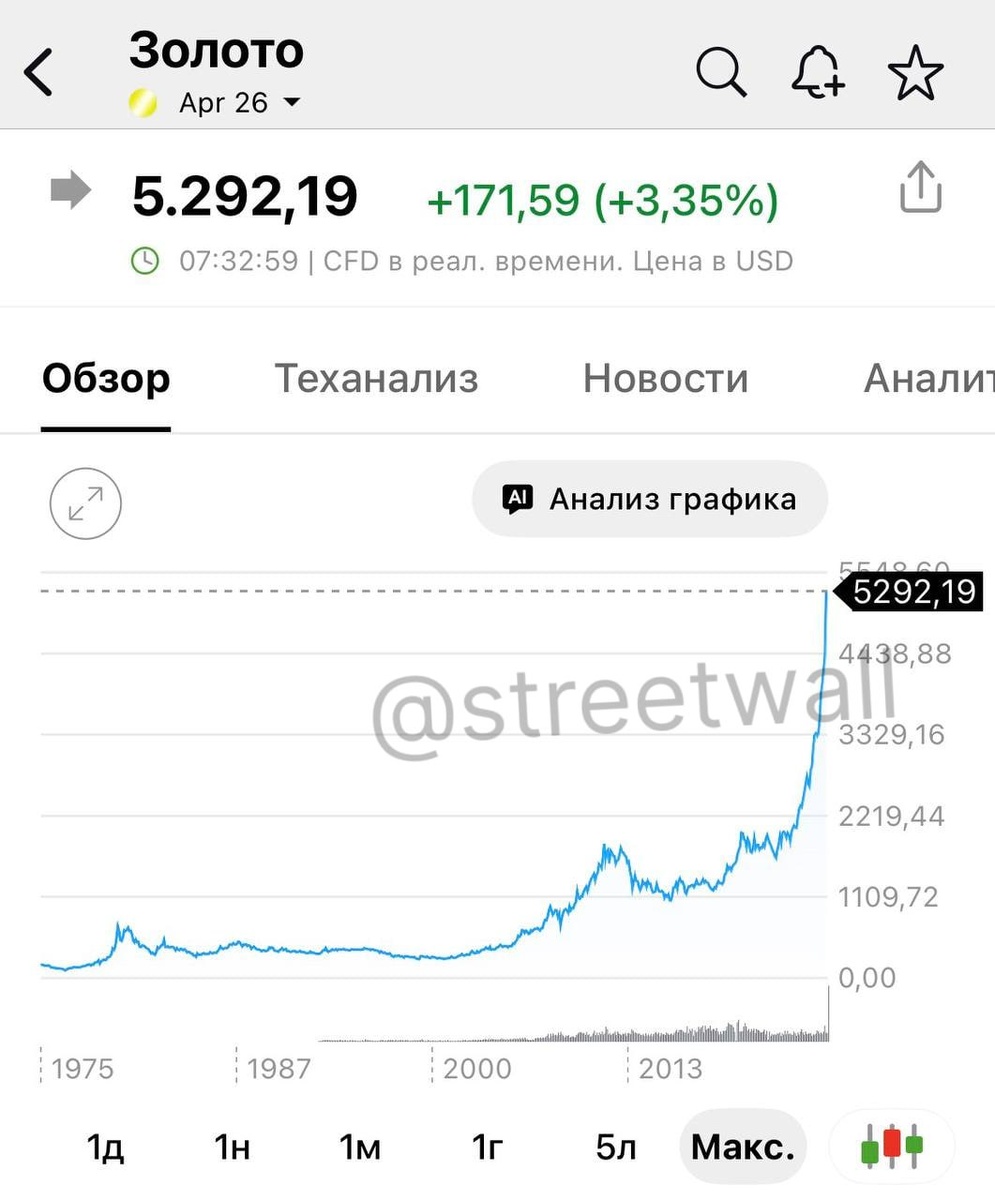 Золото превысило $5290, обновив рекорд.