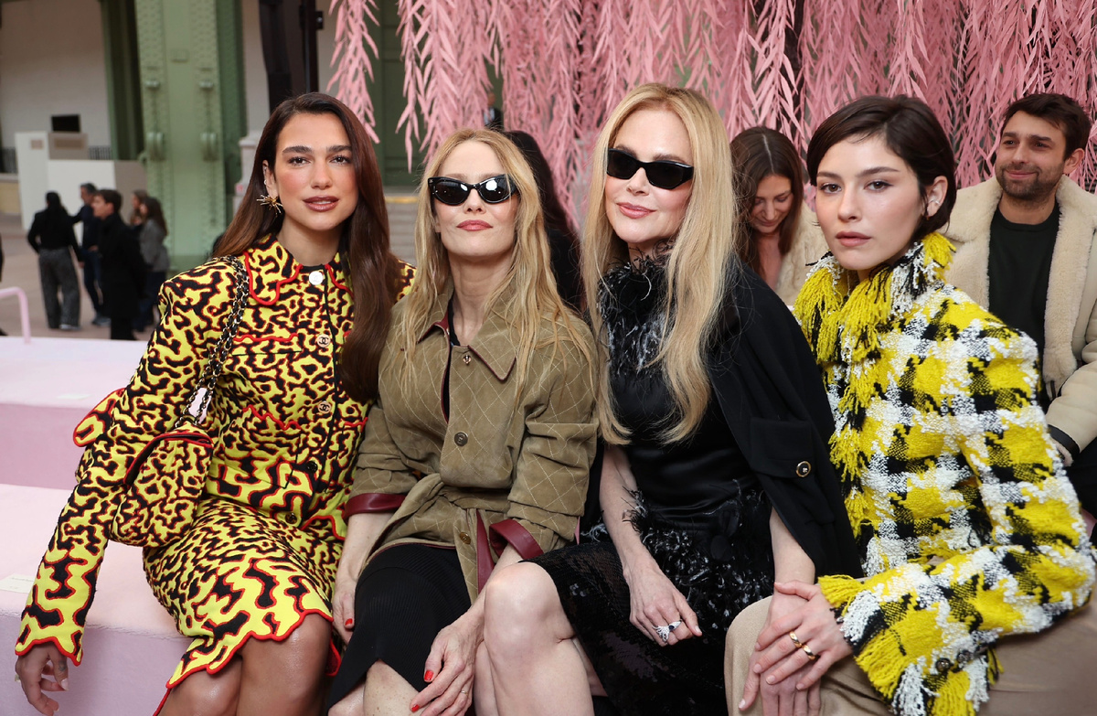 Показ Chanel haute couture весна-лето 2026 в Париже сразу задал нужный тон. Дебют Маттьё Блази в от кутюр поддержали не только аплодисментами, но и составом первого ряда, который сам по себе выглядел очень статусно. Во фронт-роу собрались Николь Кидман, Пенелопа Крус, Ванесса Паради, Тильда Суинтон, Дуа Липа, A$AP Rocky, Грейси Абрамс, Маргарет Куэлли и другие звезды. Большинство гостей сделали выбор в пользу образов из Métiers d’art 2026, тонко подчеркнув преемственность и доверие к новому креативному курсу Chanel. Николь Кидман появилась в чёрном миди-платье с декором из боа, коллекции Métiers d’art 2026, представленной прошлой осенью на показе в нью-йоркском метро. Лаконичный силуэт и деликатная драматургия образа идеально совпали с её эстетикой. Пенелопа Крус выбрала костюм от Chanel из коллекции Métiers d’art 2026 и сделала ставку на сдержанную элегантность. Её образ был построен на нюансах и точной посадке и фактуре. Ванесса Паради, одна из самых узнаваемых муз Дома, вновь напомн