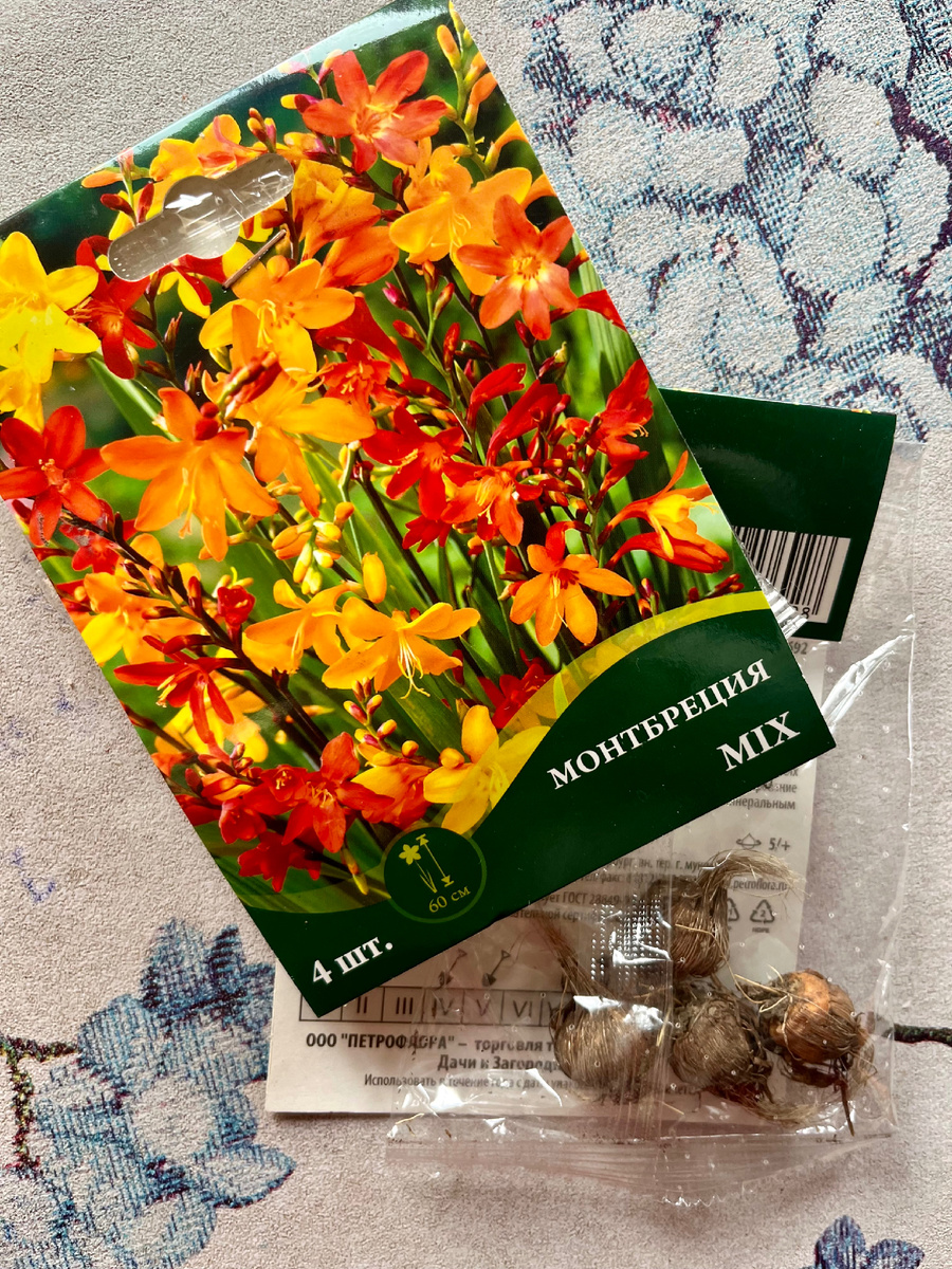 Недавно занесло нас в Фикс Прайс и среди прочего нужного и ненужного прикупила я пару пакетиков луковиц монтбреции. Очень уж она красива на фотографии.