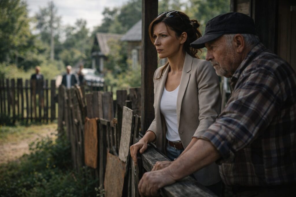 Из джипа вышла пара. Мужчина — лысый, в кожаной куртке, несмотря на жару, с золотой цепью на шее такой толщины, что ею можно было швартовать танкеры. И женщина — яркая блондинка в леопардовом костюме, цокающая каблуками по деревенской грунтовке так уверенно, словно это был паркет в Кремле.