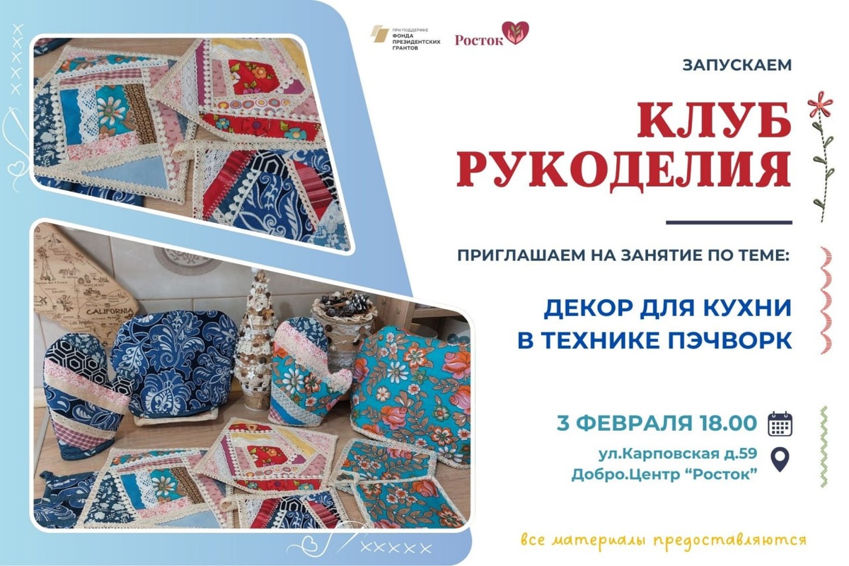 🔥 Друзья, мы запускаем Клуб рукоделия и с радостью приглашаем Вас на первое занятие, которое состоится 3 февраля в 18.00 в нашем