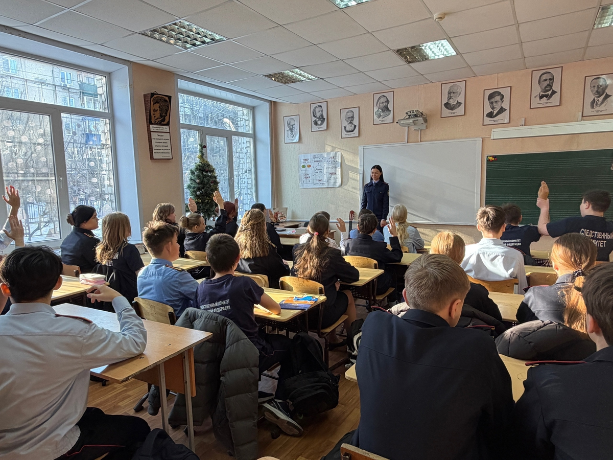 Профилактическая и разъяснительная работа с несовершеннолетними является неотъемлемой частью работы сотрудников следственного управления СК России по Курской области. Она направлена на предупреждение возможных посягательств на детей, профилактику подростковой преступности, а также повышение уровня правовой грамотности несовершеннолетних, их сознательности и безопасности. Сегодня старший помощник руководителя следственного управления СК России по Курской области (по информационному взаимодействию с общественностью и средствами массовой информации) Альбина Анатольевна Зимина провела уроки для кадет СК России, обучающихся в 5 «Б» и 7 «А» классов средней общеобразовательной школы № 27 имени А.А. Дейнеки города Курска. Во время выступления офицер затронула вопросы профилактики преступности в среде несовершеннолетних, довела информацию о необходимости быть бдительными в сети Интернет и прекращать переписку при любых обращениях сомнительного характера. Также в ходе бесед с детьми сотрудн