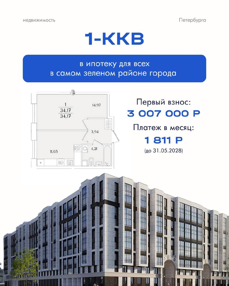 Планировка, первый взнос и расчёт — в карточке к посту 👆🏻 Почему этот вариант заслуживает вашего внимания: ▪️Программа действует для всех: не требуется статус IT-специалиста или наличие детей. ▪️До конца января стоимость самой квартиры со скидкой 2 192 538 ₽. ▪️Ежемесячный платёж до конца льготного периода — всего 1 811 ₽/месяц (до 31.05.2028), затем можно рефинансировать или досрочного погасить. ▪️Подходит тем, кто планирует продажу вторички, ждёт поступления средств или хочет зафиксировать выгодную стоимость. ▪️Для тех, кто мечтает жить в зелёном районе с городской пропиской и близостью к Финскому заливу. Если хотите узнать все детали или рассчитать альтернативные варианты — пишите Беляев.Estate, расскажем об актуальных программах.