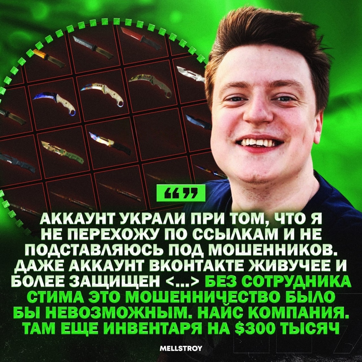 - Масштаб потерь: у стримера Mellstroy украли аккаунт Steam с игровым инвентарем стоимостью $300 000 (около 23 млн рублей).