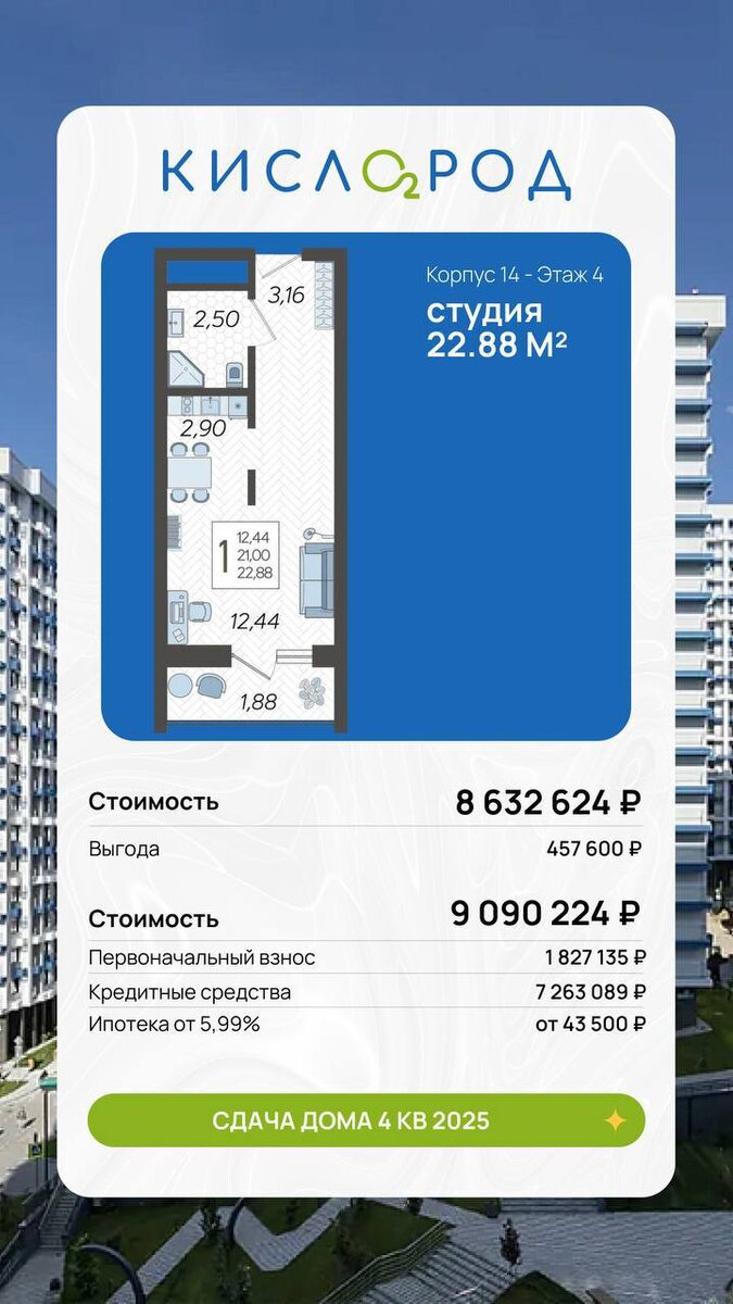 💥 Хорошие новости для агентов и клиентов, которые не любят переплачивать. В литерах 14 и 15 ЖК «Кислород» запустили акцию, где цифры реально радуют, а не «для галочки». ЧТО ПРЕДЛАГАЮТ 👇 🔹 Супер-ипотека от Совкомбанка — ставка 5,9% — сумма кредита до 15 млн ₽ — без скрытых условий, все планировки в доступе 🔹 Полный расчёт — максимальный профит — –20 000 ₽ за каждый м² сразу ИТОГО ПО ВЫГОДЕ 💰 • экономия до 1,3 млн ₽ • ежемесячный платёж от 43 000 ₽ ⏳ Акция не бесконечная — лучшие планировки разлетаются первыми. ❗️ Детали и актуальные расчёты — у куратора и на платформе ITRIELT. #жккислород #новостройкисочи #ипотека #акцииотзастройщика #недвижимость