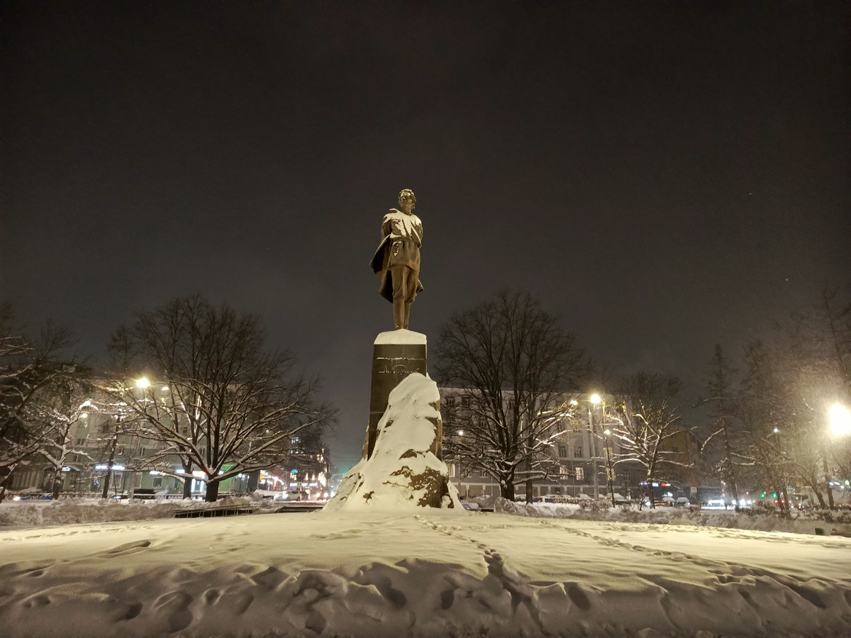 Рядом с основным памятником есть его маленькая копия, но на зиму она была закрыта, видимо от непогоды.
