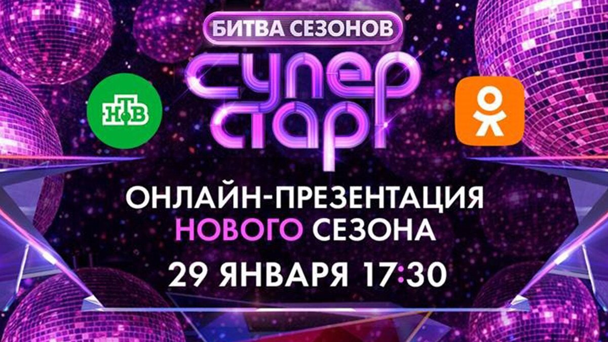 29 января в 17:30 в официальной группе «Суперстар!» в Одноклассниках состоится онлайн-презентация «Битвы сезонов», которую проведут Вадим Такменёв и Наташа Королёва. Зрителей ждут эксклюзивные подробности о 6 сезоне «Суперстар! Битва сезонов»; интересные сюрпризы; ответы на вопросы; порция ностальгии и отличного настроения. Это настоящая музыкальная битва. Битва не только эпох, стилей, жанров, но и сезонов. Это встреча самых ярких, самых узнаваемых и самых любимых артистов, тех, кто уже доказал, что они — настоящие суперстары. К презентации также присоединятся генеральный продюсер НТВ Тимур Вайнштейн, звездные члены жюри — Лера Кудрявцева, Сергей Соседов, Стас Пьеха и Ирина Понаровская. И, конечно, суперстары: Ирина Шведова, Влад Сташевский, Шура, Виктор Салтыков, Ольга Зарубина, Жан Милимеров, Алексей Глызин, Анастасия Макаревич, Сергей Челобанов, Ксения Георгиади. Присоединяйтесь к онлайн-презентации шоу «Суперстар! Битва сезонов».
