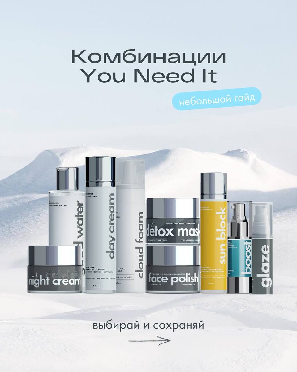 Собрали для вас в карточках готовые комбинации из продуктов You Need It — под конкретные задачи кожи
