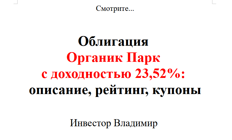 Облигация Органик Парк с доходностью 23,52%: описание, рейтинг, купоны