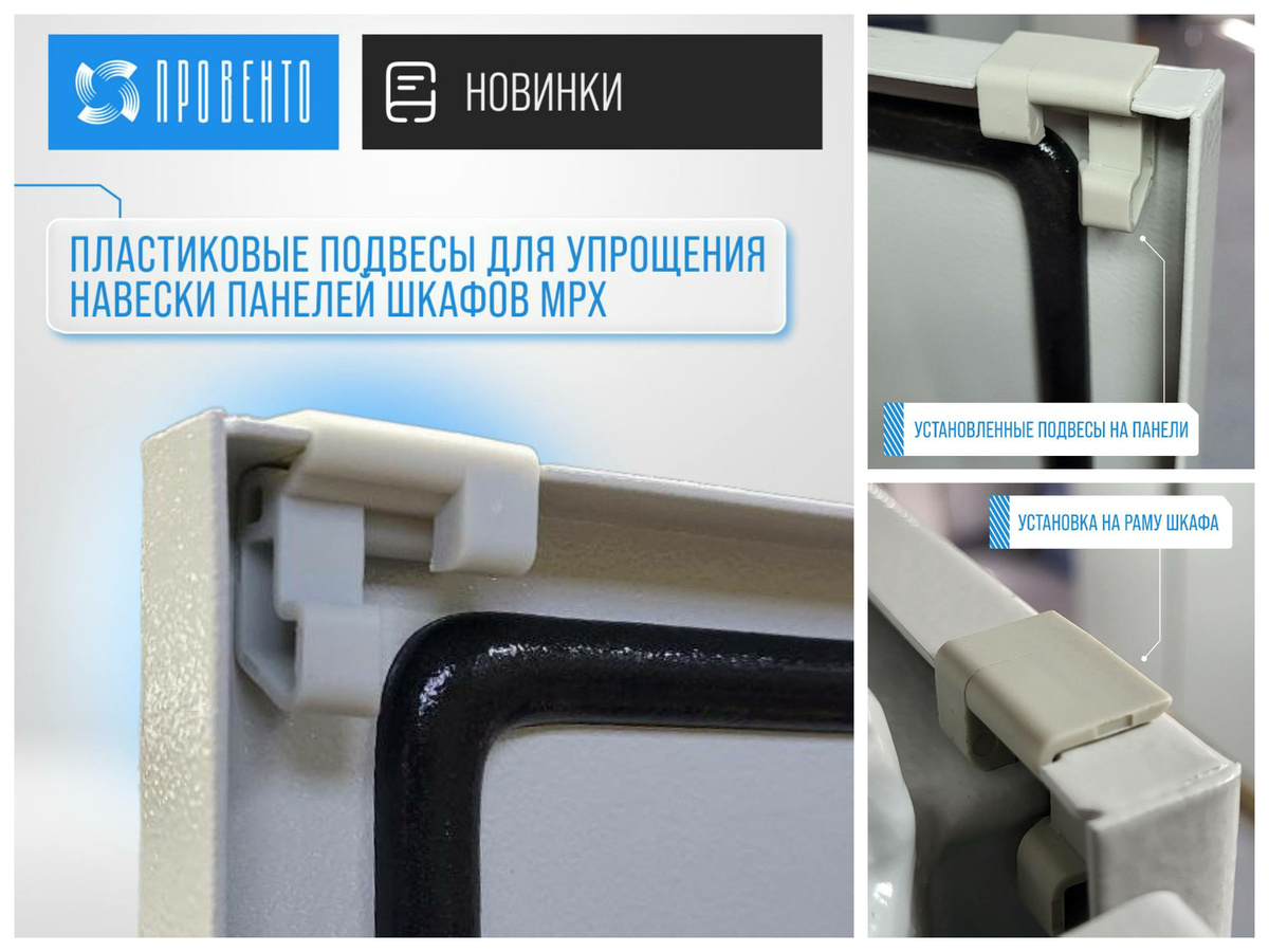 Компания «Электро-Профи» сообщает, что компания ПРОВЕНТО выпустила новые подвесы для упрощения навески боковых (SP) и задних (BP) панелей напольных шкафов MPx. Это решение значительно упрощает процесс монтажа, сделав его более удобным и быстрым. Благодаря продуманной конструкции и высокому качеству материалов значительно экономится время и трудозатраты, а также обеспечивается надежность и долговечность установки. 1. Статус продукции: - Продукция ПРОВЕНТО: на складе компании «Электро-Профи» 2. Узнать наличие и цены: ✆- Телефон: +7 (495) 921-03-58 ✉- E-mail: msk@ep.ru
