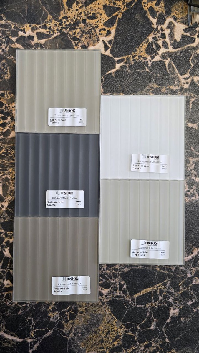 Образцы рифленого крашеного стекла для заполнения дверного полотна от Union