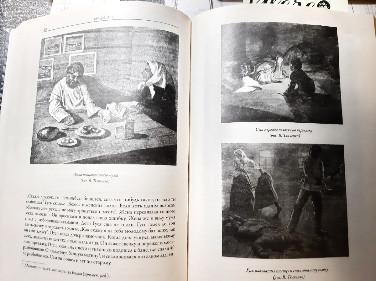 Дело было лет двести назад. Жил в уединенном месте, далеко от деревень, богатырь по имени Гусь. С семьей жил. Жена-красавица, дочь-подросток и маленький сынишка. В той местности по смуте великой бродило много разбойничьих шаек. Наткнулись на дом Гуся. Сорок разбойников расселились на постой в бане. Атаман вошел в хозяйский дом. Атаману разбойников очень приглянулась жена Гуся. И решил он богатыря убить. Но не смог. А молодой женщине тоже приглянулся атаман разбойников, и решила она мужа извести. Подпоила она мужа и спрашивает, откуда такая сила у него, что шайка разбойников его боится. Гусь сказал жене по секрету. Что заговоренный он, но сладить с ним можно, если длинным женским волосом опутать правую руку. Уложила жена пьяненького мужа спать, да и опутала руку волосом. А сама принялась любиться с атаманом разбойников. Муж проснулся, увидел, а сделать ничего не может. Силушка исчезла от волоса. Идут дни и ночи. Жена с атаманом милуется. А Гусь на все это смотрит. Подзывает Гусь свою