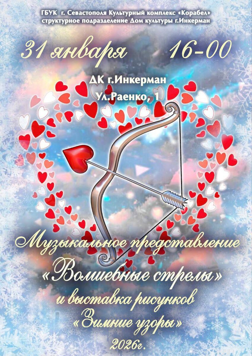 " 👉 Вход свободный 👉 Когда? 31 января в 16:00 👉 Где? ул. Раенко, д. 1, Дом Культуры, г.Инкерман 👉 Возрастные ограничения 6+ ✨Давай сходим, Севастополь | Читайте и смотрите нас в МАХ