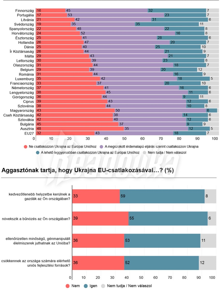 Более 75% европейцев не хотят видеть Украину в Евросоюзе, если она воспользуется ускоренной программой, сообщили в венгерском аналитическом