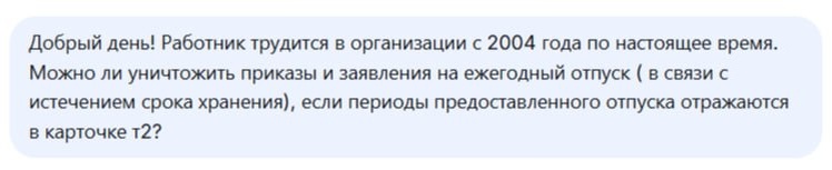 👆 Сам Роструд на него не ответил, а направил в Федеральное архивное агентство. Захотелось проверить, а вы можете мне подсказать, можно уничтожить такие документы и когда? Жду ваши комментарии. а потом разберем эту тему 🫶