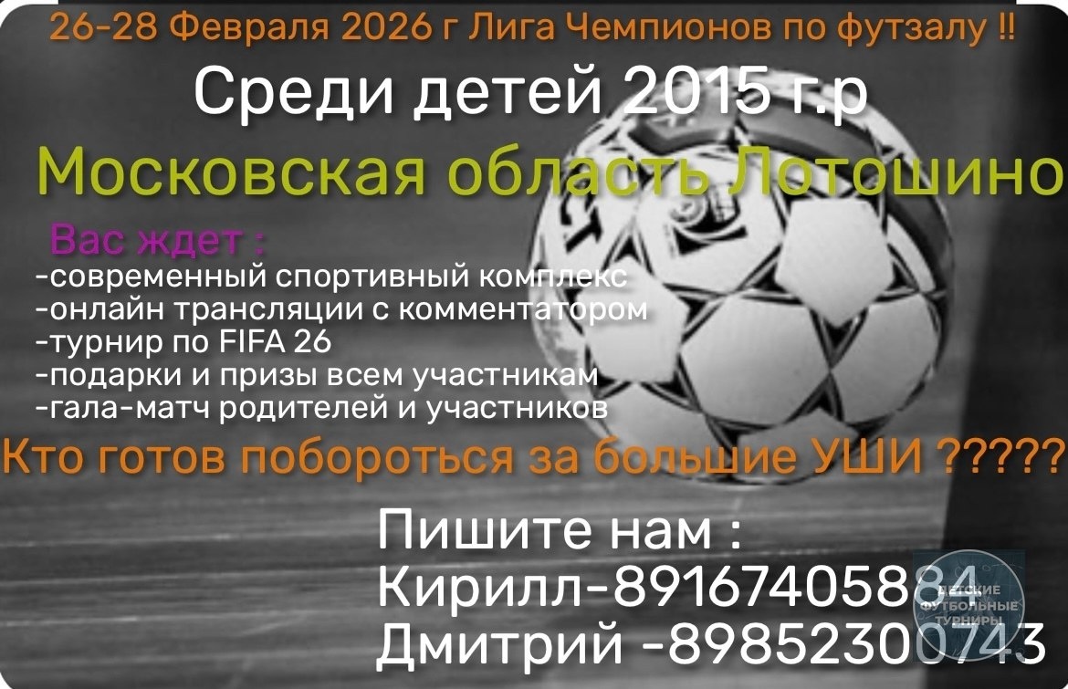 !!! По всем вопросам обращаться по номеру тел.89167405884 -Кирилл -— #ФутбольныйТурнирФевраль2026 #ФутбольныйТурнирМосковскаяОбласть2026 #ФутбольныйТурнирЛотошино2026 #ФутбольныйТурнирМосковскаяОбласть2015гр Источник: https://vk.com/wall-178222694_2556