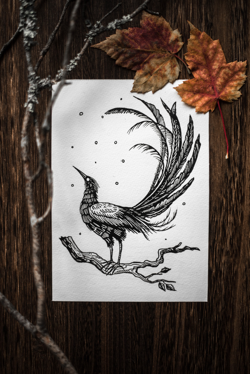 Хочу показать вам серию птиц, нарисованных пером на формате А5 для набора открыток.