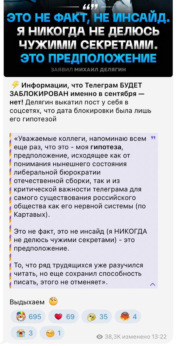 Вопрос времени. Хотя многие говорят, что через телеграм идет информирование о СВО и на СВО контент через него.