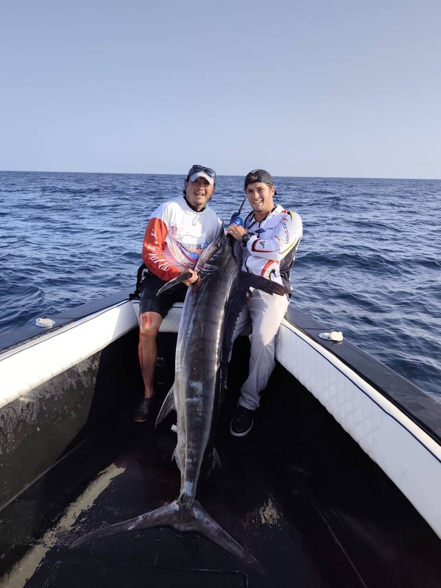 Пока все гиды уехали в Кению, Фарис (с кем мы плотно половили в октябре) обкатывал новую лодку, закупал и настраивал оборудование под ловлю марлина, искал подходящие локации. На все это ушло 2 полных месяца. Hard work always pays off. Последние недели Фарис успешно и результативно ловит марлинов. Как в трол, так и джигом. За последние дни были поимки, 4х часовые файты и обидные сходы гигантских экземпляров. Кстати, тюна уже появилась на юге Омана, но пока небольшого размера 15-35 кг. Сезон на подходе. К трофейной двойке GT и тунца, в этом году теперь добавляется и марлин 🔥 Это еще не всё, у нас также большие планы по развитию нахлыстовой ловли в этой локации, но об этом позже.