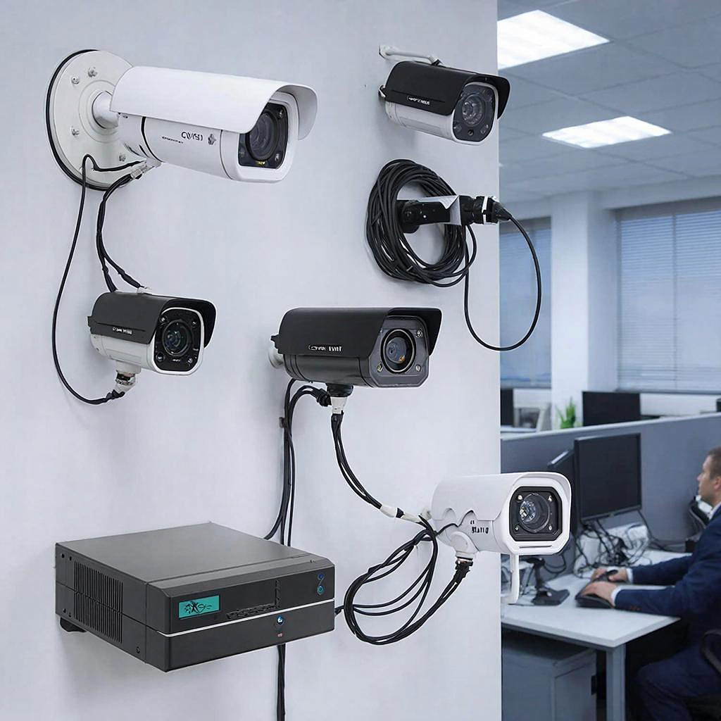 - Топология простая: каждая камера — коаксиал до DVR + питание 12V DC (централизованный блок питания или PoC). - PoC (Power over Coax) поддерживают не все устройства. Если хотите одно кабельное решение питания+видео, проверьте модель камеры и DVR. - Для длинных трасс используйте качественный коаксиал (RG59, лучше RG6) или видеобалун + витая пара. Балун позволяет передавать сигнал на километры по UTP. - Защита от помех: заземление, экранированный кабель, ограничители перенапряжения на внешних точках.