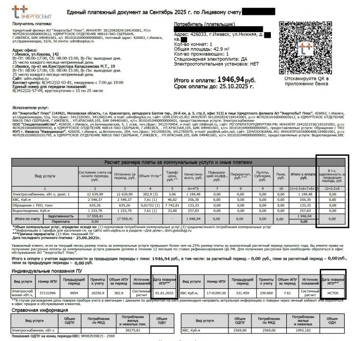 Единый платёжный документ — обновлённая версия обычной квитанции. Специалисты компании сделали платёжный документ удобнее для восприятия, начисления по каждой услуге теперь отражаются более детально и подробно. Единый платёжный документ, в отличие от обычной квитанции, содержит: · нумерацию столбцов и формулы, благодаря которым стало наглядно понятно, из чего складывается сумма в графе «итого»; · отдельный столбец с задолженностью за предыдущие периоды; · отдельную строку с платой за отключение (или возобновление) энергоснабжения из-за долгов и госпошлиной; · информацию о сроках поверки приборов учёта. Кроме того, персональные данные собственника исключены из адресной строки, что снижает риск их кражи мошенниками. Единый платёжный документ в электронном виде придёт раньше, чем бумажная квитанция.