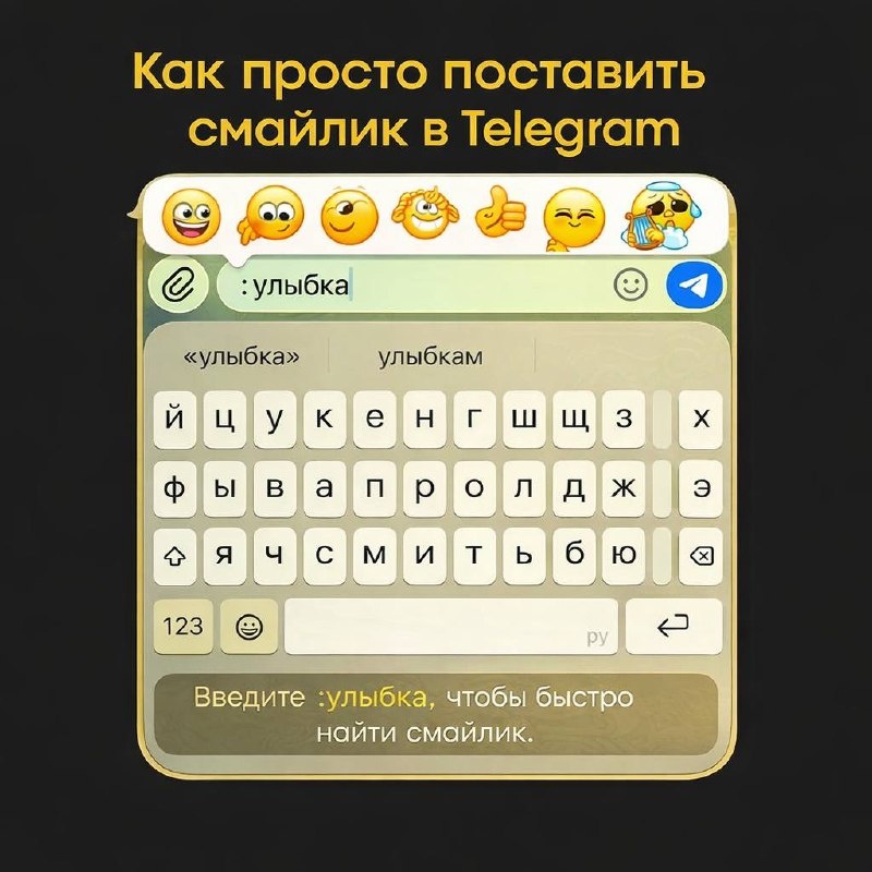 Вы замечали, что поиск нужного смайлика иногда занимает больше времени, чем написание самого сообщения? Особенно когда вы ведёте переписку или пишете посты и хочется быстро добавить нужную эмоцию.🙂 Ловите простой и реально удобный лайфхак. Как быстро найти смайлик в Telegram: 1️⃣ В поле ввода текста поставьте двоеточие 2️⃣ Сразу после него напишите слово, которое хотите изобразить 3️⃣ Telegram сам предложит подходящие эмодзи Например: :улыбка — и вы сразу увидите несколько вариантов смайликов с улыбкой. Остаётся только выбрать нужный. Я показала это на скриншоте — посмотрите, как это выглядит вживую. Мелочь, а переписка и работа с текстами становятся заметно быстрее. Если совет был полезен и вы будете им пользоваться — поставьте огонёчек этому посту 🔥 #тг_полезное ➡️ Ещё один лайфхак о Telegram
