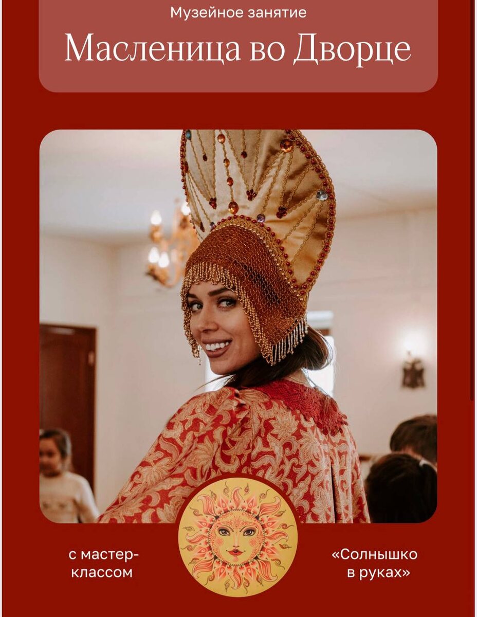 !☄️ 🗓️30 января в 11:00 📍 Дворец царя Алексея Михайловича, вход 1. Проспект Андропова, д. 39, стр. 69, м.Каширская В 11:00 — музейное занятие «Масленица во Дворце». Участники прогуляются по Мужской половине Дворца царя Алексея Михайловича, познакомиться с традициями празднования Масленицы в XVII веке и научатся играть в народные игры. В 12:00 — мастер-класс «Солнышко в руках», на котором можно будет изготовить подставку под горячее. @Together_with_kids Пост носит информационный характер Поддержать канал голосом ЗДЕСЬ 📲 Подписаться в МАХ