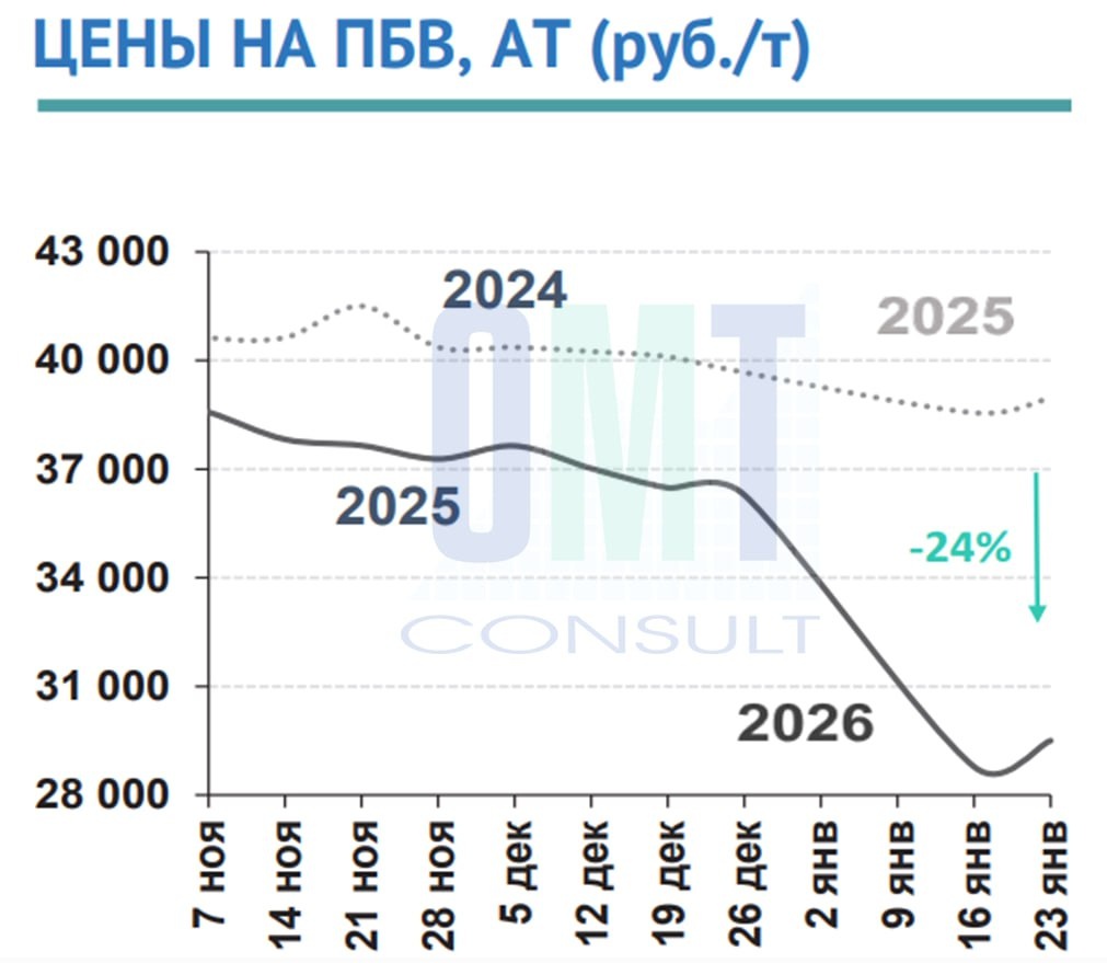 По экспертной оценке "ОМТ-Консалт" цены на полимерно-битумные вяжущие в период с 19 января по 23 января 2026 г
