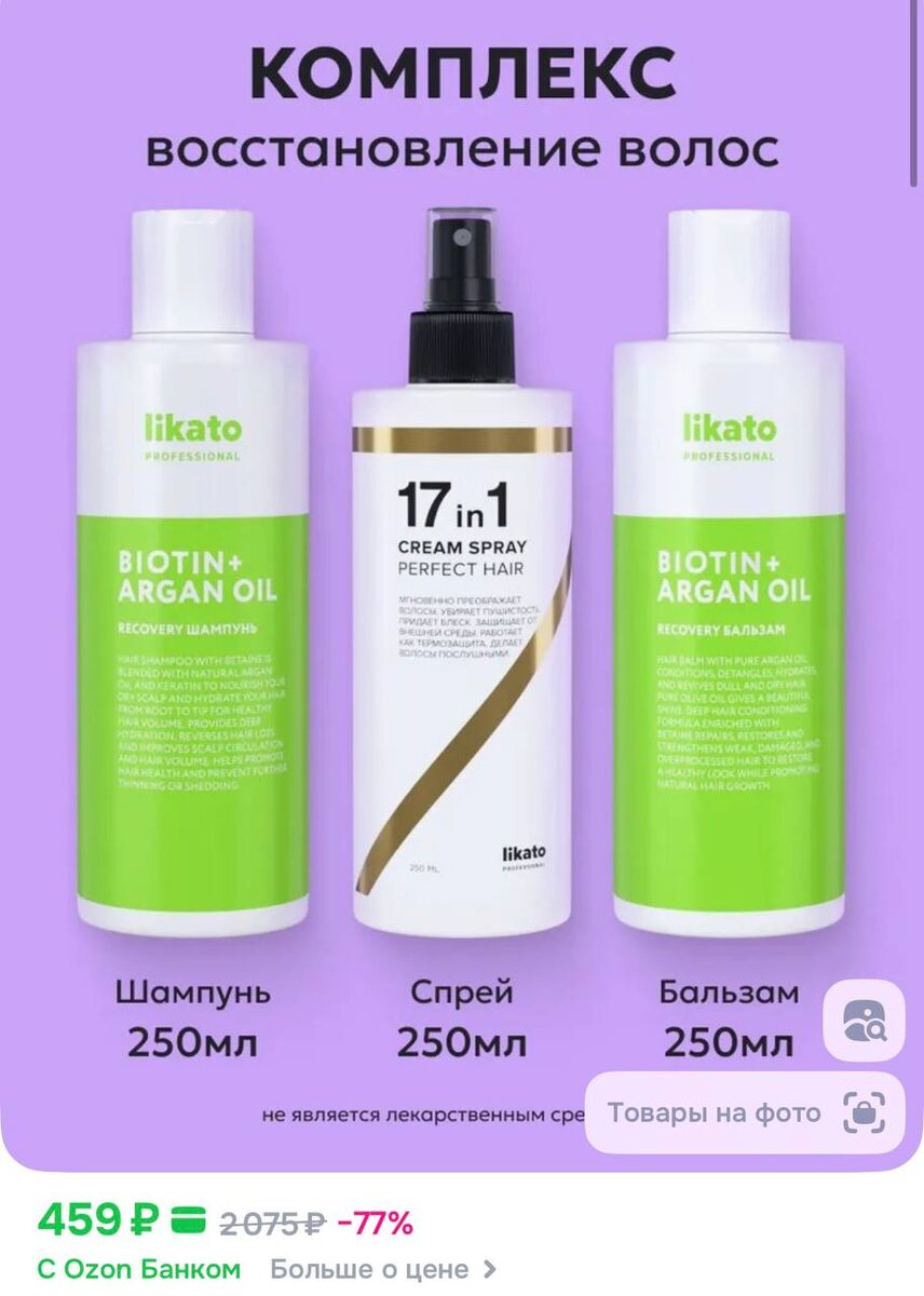 😀😀😀Likato Professional Набор косметики для волос: шампунь, бальзам и спрей с термозащитой