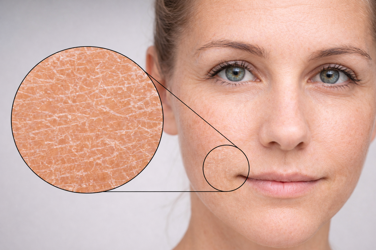 Ключевая особенность сухой кожи — низкая способность удерживать влагу. При правильно выстроенном уходе такая кожа может быть устойчивой, комфортной и визуально плотной. Но при малейших ошибках барьер разрушается быстро.