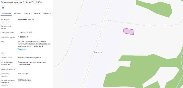 Название: право заключения договора аренды земельного участка из земель населенных пунктов с кадастровым номером 71:01:020216:308, площадь